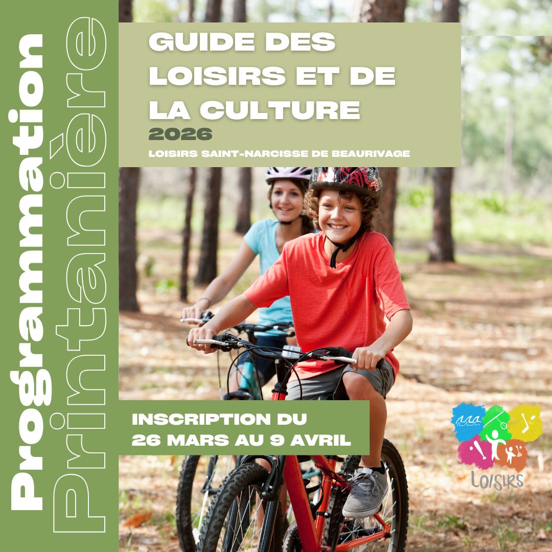 Service des loisirsSuivez nos activités sur la page Facebook Loisirs Saint-Narcisse. Responsable : Noémie Lehoux, coordonnatrice des loisirs [email protected] Programmation - Printemps 2026